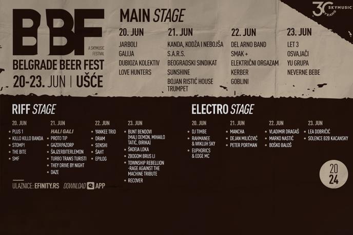 Podsetimo, na main stage-u očekuju nas najveća imena domaće i regionalne scene, a osim Beogradskog sindikata, YU Grupe i Osvajača tu su i Dubioza Kolektiv, Galija, Električni orgazam, Sunshine, S.A.R.S, LET 3, Kerber, Smak plus, Goblini, Jarboli, Love Hunters, Kanda Kodža i Nebojša, Bojan Ristić Trumpet house band, Del Arno Band i Neverne bebe.