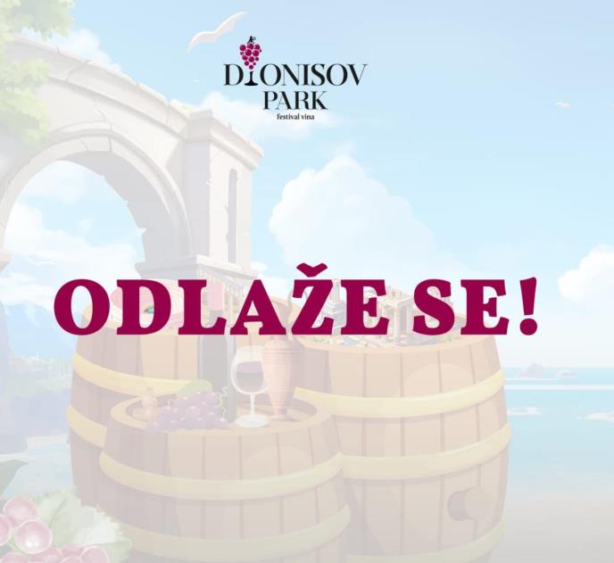 Veliki festival zabave i vina, Dionisov Park, koji je trebalo da se održi 30. i 31. avgusta, nažalost se odlaže zbog tehničkih razloga.