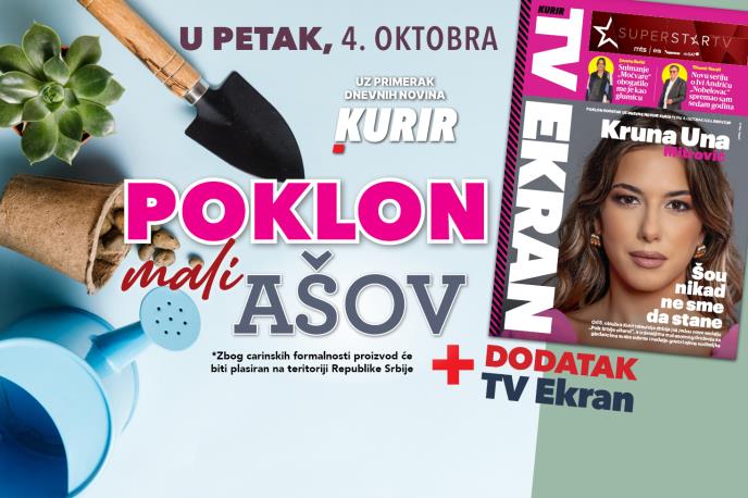 Ovog petka uz dnevne novine Kurir očekuje vas posebno iznenađenje! Svojim vernim čitaocima darujemo TV Ekran, dodatak koji donosi sve najnovije informacije i zanimljivosti iz sveta televizije i zabave, kao i mali, praktičan ašov, koji će olakšati mnoge poslove u vašem vrtu.