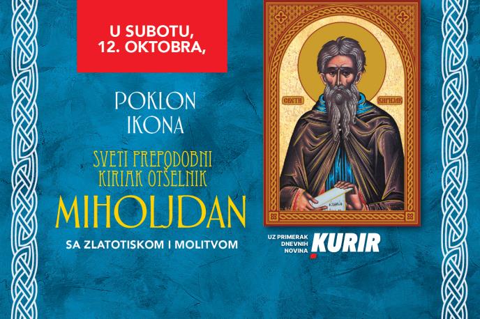 Povodom Miholjdana, uz vaš omiljeni dnevni list Kurir, dobijate izuzetan poklon – ikonu Svetog Kirijaka u zlatotisku sa molitvom.
