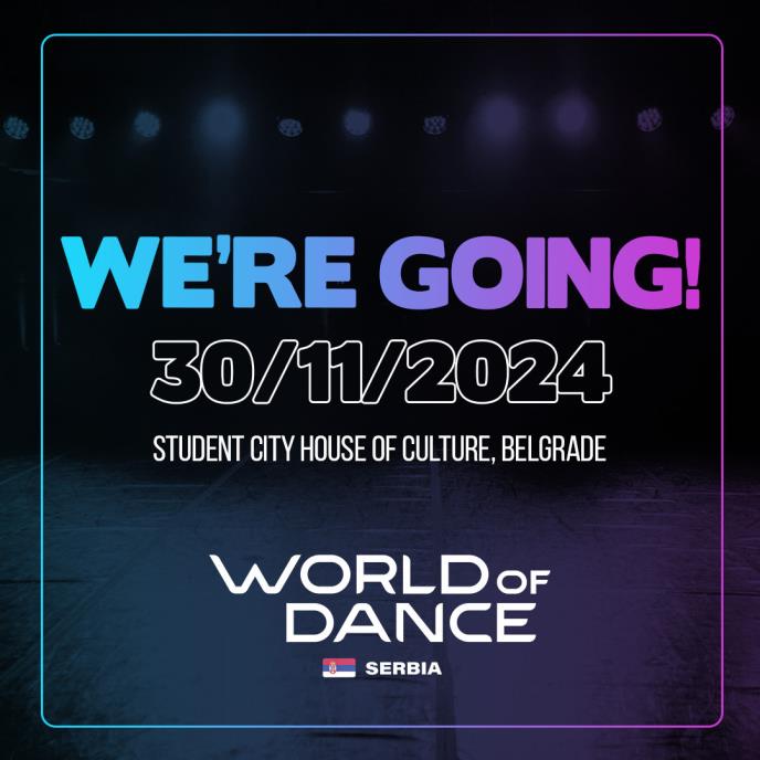 Sa velikim zadovoljstvom Vas obaveštavamo da jedno od najprestižnijih svetskih takmičenja, World of Dance, po drugi put dolazi u Srbiju! Ovaj izvanredni događaj, organizovan uz podršku Asocijacije modernih igrača i koreografa, biće održan 30. novembra u Domu kulture “Studentski grad”. Takmičenje će ugostiti strane sudije, kao i specijalnog predstavnika čuvene svetske plesne trupe Royal Family.