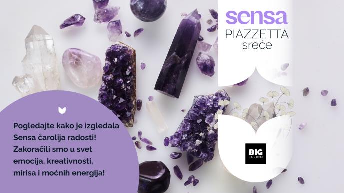 Ukoliko ste se u subotu, 7. decembra, od 15 do 20 časova slučajno ili namerno zadesili u Big Fashion tržnom centru, mogli ste da zakoračite u svet čula, emocija, kreativnosti i mirisa, u svet inspiracije, radosti, moćnih energija i budućnosti - na Sensa Piazzetti sreće. Redakcija Sense oranizovala je uz pomoć Big Fashion tržnog centra festival radosti i dobre energije, a svi su se na njemu proveli sjajno.