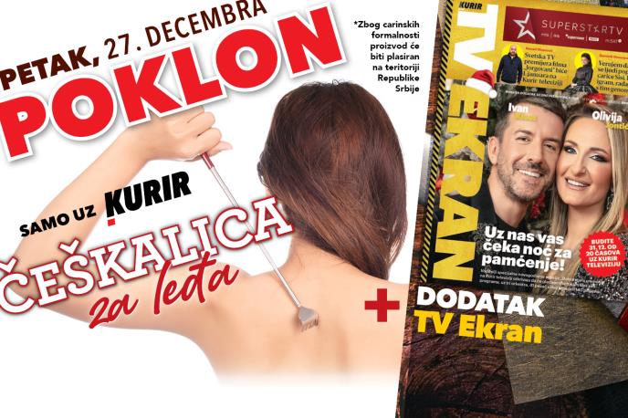 U petak, 27. decembra, uz Kurir vas očekuje iznenađenje koje donosi kombinaciju praktičnosti i udobnosti! Ovog puta poklanjamo vam TV Ekran, popularni dodatak sa najnovijim televizijskim programima, ali i korisnu češkalicu za leđa – idealnu za opuštanje i trenutke kada vam je potrebna dodatna udobnost kod kuće.