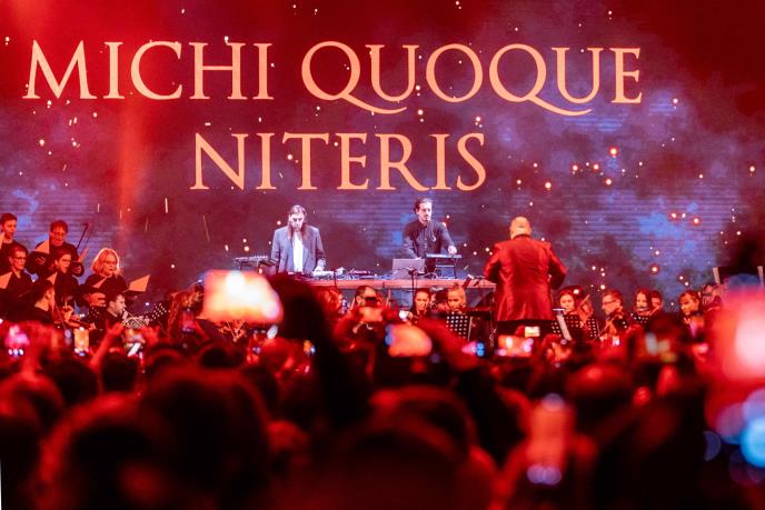 Spoj lepote klasične i elektronske muzike, crvena, strast, hor, orkestar, DJ, veštačka inteligencija, vizuelni efekti - sve to je u subotu povezala „Karmina Burana“, jedno od najizvođenijih klasičnih horskih dela u Hangaru luke Beograd, pred 2.500 posetilaca. Beogradski elektronski live sastav IDQ nastupao je na bini zajedno sa impozantnim Simfonijskim orkestrom Srbije i horom, sa više od 100 izvođača na sceni, sopranom Ivanom Čanović, tenorom Aleksandrom Tolimirom, baritonom Đorđi Cuckovskim i dirigentom Predragom Gostom.