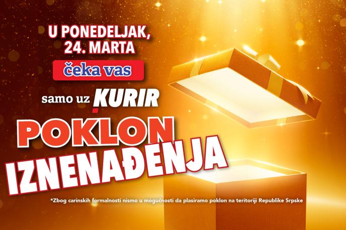 Ne propustite! U ponedeljak, 24. marta, Kurir vam daruje poklon iznenađenja koji će vam sigurno ulepšati dan! Kurir misli na vas, donoseći zanimljive, korisne i vredne poklone koji obogaćuju vašu svakodnevicu.