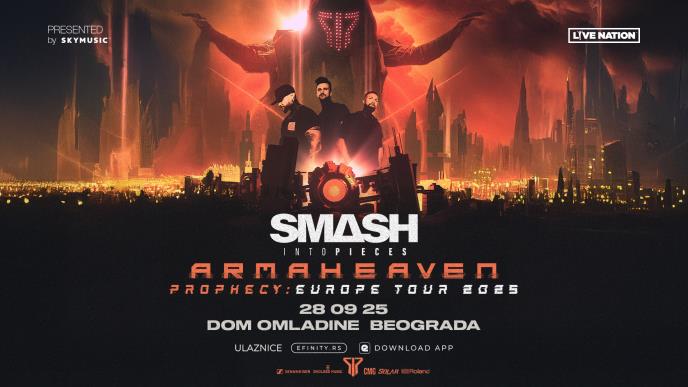 Jedan od trenutno najuzbudljivijih kinematografskih rok bendova, Smash Into Pieces, po prvi put dolazi u Srbiju! U okviru svoje velike evropske turneje Armaheaven Prophecy: Europe Tour 2025, švedski bend će nastupiti u Beogradu, 28. septembra, u Domu omladine Beograda.