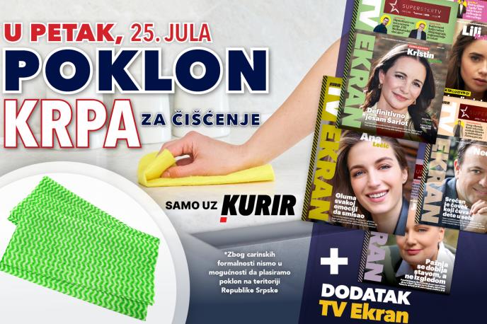 I ovog petka Kurir misli na vas! U novom broju dobijate dva poklona – najprecizniji i najčitaniji TV vodič „TV Ekran“ i izuzetno praktičnu krpu za čišćenje, neophodnu u svakom domaćinstvu.