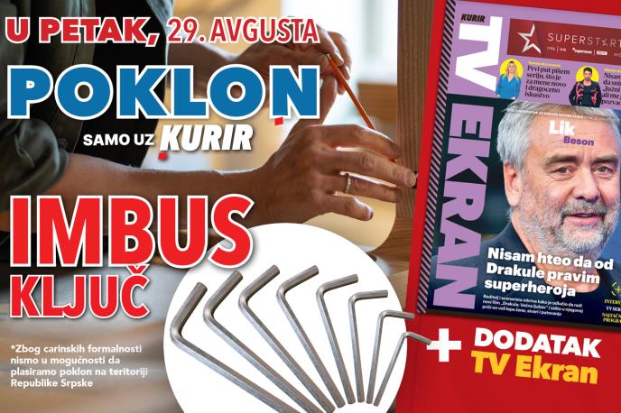 Uz novi broj vašeg omiljenog dnevnog lista stiže dvostruki poklon! Ove nedelje uz Kurir dobijate specijalno izdanje TV Ekran – najtačniji vodič kroz TV program, intervjue i priče iz sveta zabave – ali i praktičan set inbus ključeva koji će vam uvek biti pri ruci.