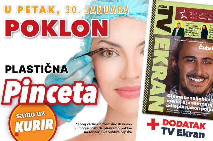 Uz dnevno izdanje novina Kurir stiže i novi broj omiljenog TV vodiča TV Ekran, kao i koristan dodatak koji uvek dobro dođe – pinceta. Mali, ali neizostavan alat za ličnu negu, pinceta je praktična, jednostavna za upotrebu i lako se može poneti svuda sa sobom.