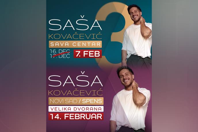 Jedan od najpopularnijih pop pevača u regionu, Saša Kovačević, nastavlja svoju trijumfalnu seriju koncerata velikim solističkim koncertom. Nakon što je u rekordnom roku rasprodao dve večeri u beogradskomSava Centru, i dok se za treći koncert zakazan za 7. februar u Plavoj dvorani već traži karta više, Saša je odlučio da obraduje i publiku u Novom Sadu. Ovaj veliki koncert zakazan je za 14. februar 2026. godine, kada će velika dvoranaSpensapostati epicentar najlepših emocija. Za ovaj koncert u Novom Sadu već vlada nezapamćeno interesovanje, što potvrđuje da je publika s velikim uzbuđenjem dočekala vest.