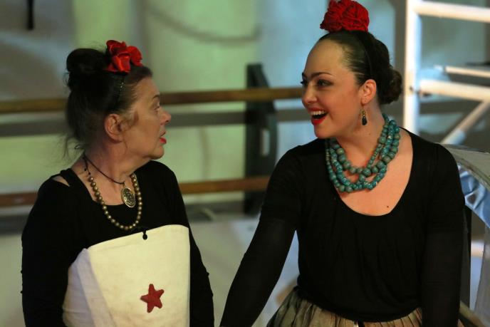Na sceni se susreću dve Fride, starija i mlađa kao simboli vremena, sećanja i unutrašnjeg dijaloga. U predstavi su tokom godina igrali istaknuti umetnici među kojima su Dobrila Stojnić, Vanja Milačić, Slobodan Beštić, Vanja Ejdus, Zoran Ćosić i Bogdan Bogdanović, stvarajući kroz godine snažan scenski portret jedne od najintrigantnijih umetnica 20. veka.