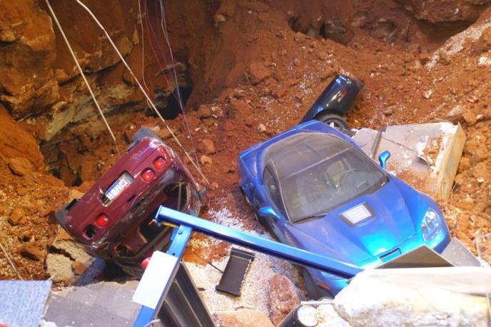LUISVIL - Osam automobila izloženih u muzeju u Bouling Grinu, u Kentakiju posvećenom korveti, simbolu američke automobilske industrije, propalo je kroz ogromnu rupu koja se otvorila ispod muzeja.