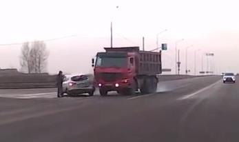 Mali terenac skreće levo, u susret mu ide kamion kiper. A onda...