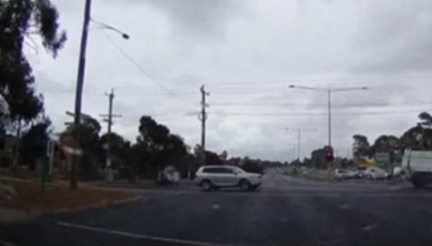 Ovaj incident odigrao se na jednoj raskrsnici u Melburnu, Australija, za samo nekoliko sekundi. Vozač automobila naglo je ukočio kada je video zaslepljujuće svetlo kroz prozor vozila. Kako je grom promašio automobil, udario je u drum, a delići betona odleteli su u pravcu vozila.