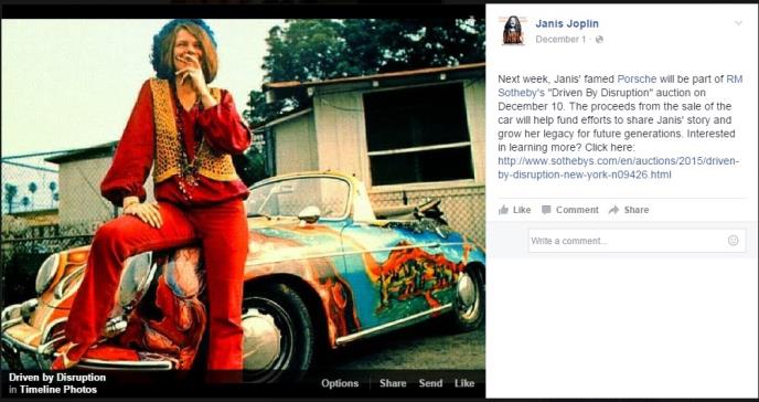 Iako se očekivalo da će automobil "Porsche"356C", koji je jednom vozila Dženis Džoplin, dostići cenu između 400 i 600 hiljada dolara, on je prodat juče, na aukciji u Njujorku, za 1,76 miliona dolara.