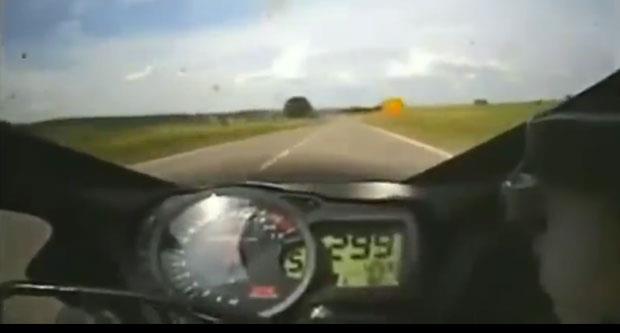 I u Nemačkoj se vozi 300 km/h, ali ne na auto banu, već na putevina gde važe ograničenja i gde su ovakve brzine najstrože zabranjene! Jedan motociklista okačio je kameru na svoj motor i odvrnuo gas. On munjevitom brzinom obilazi vozila, ali prolazi i pred patrole policije koja radarima meri brzinu. Prošao je tolikom brzinom da se nije ni video... Pogledajte ovaj video.