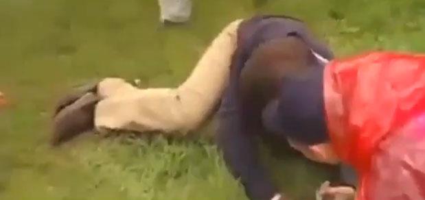 U početku je nepomično ležao na travi, ali je ubrzo pozvana hitna pomoć i mladi reporter je prevezen u obližnju bolnicu s potresom mozga i ostalim lakšim povredama