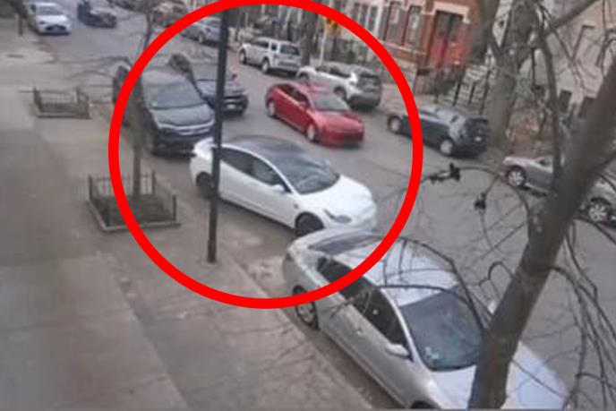 U tom trenutku nailazi vozilo koje se zaustavlja kako bi se vozač Tesle isparkirao i nastavio vožnju ulicom, verovatno sa namerom da se parkira na mesto gde je bio Tesla, jer se vidi da vozač pali migavce.