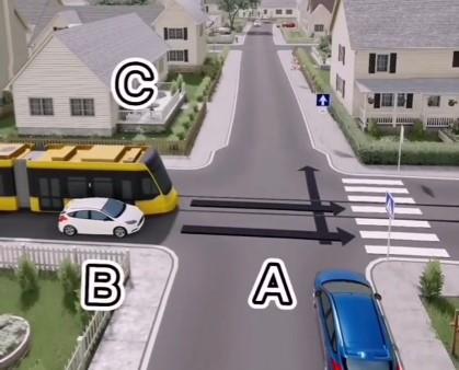Dobro pogledajte znake i razmislite koje vozilo na ovoj raskrsnici ima prednost, A, B ili C?