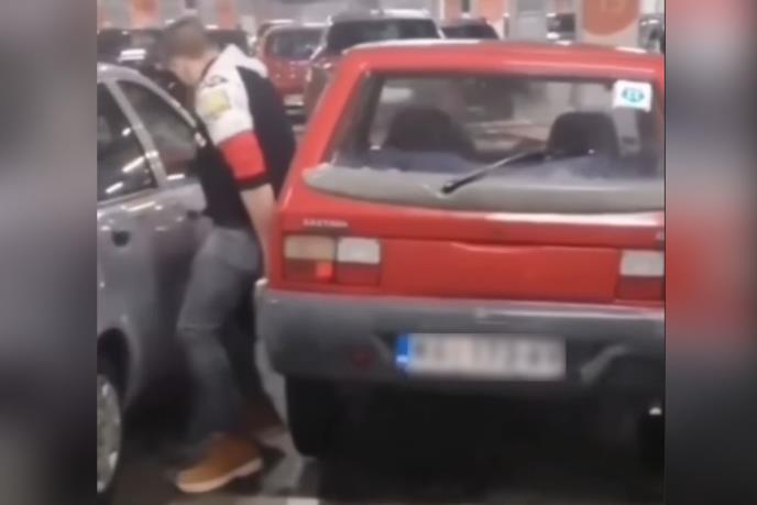Kamerom je zabeleženo kako mladić izlazi iz "jugića" u garaži. Otvara vrata i već se može primetiti kako je stao malo preblizu autu s njegove leve strane, kao i da je zgazio liniju koja označava prostor predviđen za parkiranje. I u trenutku kada bi ostali vozači automobila seli ponovo za volan i preparkirali se, ovaj mladić podiže auto i pomera ga, piše Index.