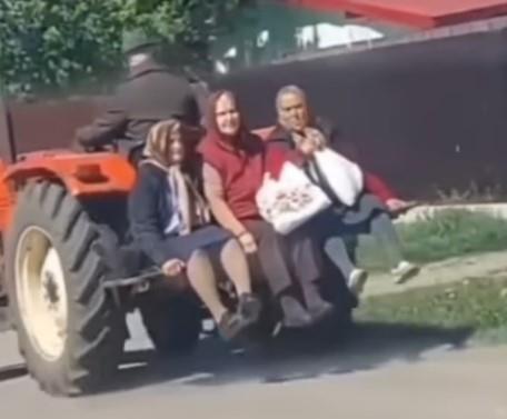 Snimak nesvakidašnje vožnje po selu osvanuo je na Instagram stranici Brdoviti Balkan, a na njemu se vidi kako jedan stariji vozač traktora prevozi tri simpatične bakice.