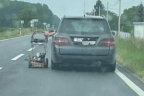 Na Fejsbuk stranici "Saobraćajne zgode i nezgode" objavljena je fotografija nesvakidašnje situacije. Vozač slatinskih registarskih tablica istovremeno je vozio i automobil i kosilicu.