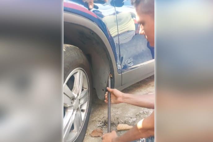 ČUO JE DA SE NEŠTO POMERA UNUTAR KOLA I UZEO PAJSER: Kad je razvalio blatobran, ono što je iz njega ispalo sve ostavilo BEZ TEKSTA Foto: Printscreen/TikTok