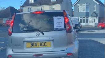 Jedan vozač u Velikoj Britaniji zalepio je "alibi poruku" na zadnji prozor svog automobila objašnjavajući zašto vozi tako sporo.
