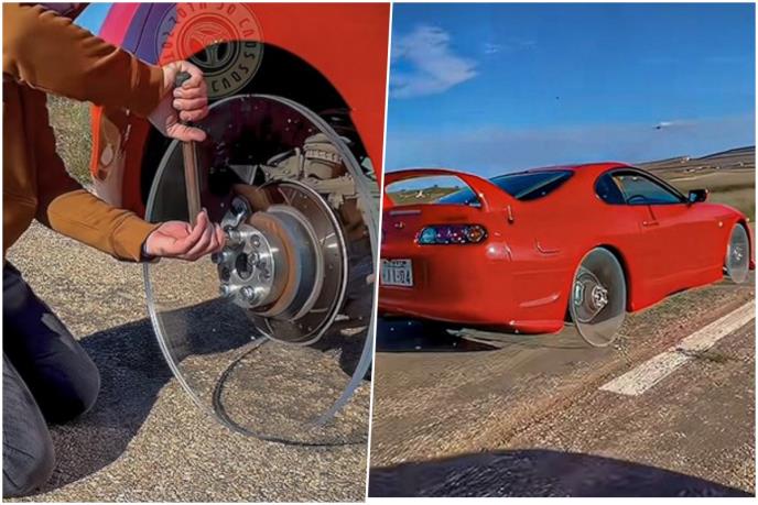 Verovali ili ne, ova Supra vozi na potpuno transparentnim točkovima, ako se ove ploče uopšte mogu tako zvati. Jasno je kako ovim dodatkom automobil nije ništa dobio. Sasvim je sigurno da nisu previše upotrebljivi, a još manje udobni. Svejedno, ovakva primena polikarbonata osigurala je stvaranje snimaka koje je do sada pogledalo preko 4.3 miliona korisnika TikTok mreže.