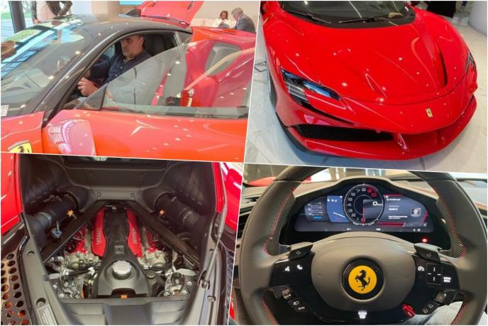 - Radi se o potpuno novom automobilu, nikada registrovanom sa 0 kilometara. Specifičnost ovog SF90 automobila je u tome što je on plug-in hibrid. On ima tri elektromotora, dva za pogon i treći koji se nalazi kod menjača u spojnici sa klasičnim motorom. Specifično je to što može da prede nekih 40 kilometara samo na struju, što je neobicčo za automobile ovih performanski. I njegova performansa sa karbokeramickim pločicama i svim karbonskim detaljima unutra ga čine izuzetno laganim i upotrebljivim kako za stazu tako i za svakodnevnu vožnju.
