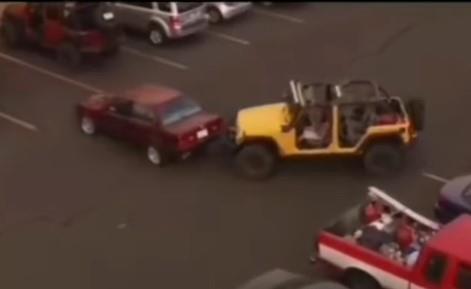 Takav potez je ozbiljno naljutio vlasnika terenca koji je potom odlučio da reši situaciju tako što je podigao i zakačio BMW i bukvalno ga sklonio sa parking mesta na koje je potom on stao.