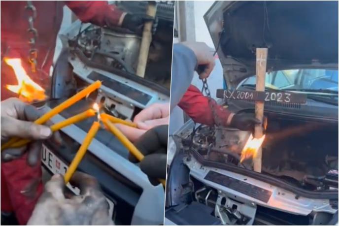 Okadili su "pokojnika", održali opelo, pa zapalili sveće oko automobila.