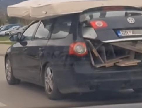 Na snimku koji je nastao tokom vožnje vidi se "pasat" koji je "legao" zadnjim delom jer je gepek prepun stvari, pa ni poklopac prtljažnika nije mogao da se zatvori, a na krovu je dušek i na njemu muškarac koji se grčevito drži za njega dok mlatara nogama!