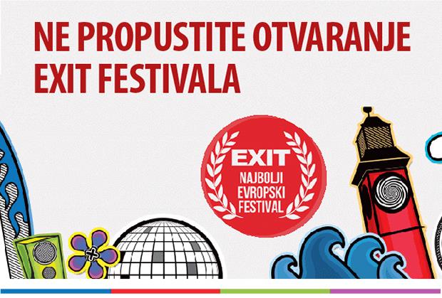 Kurir vas vodi na otvaranje Exit festivala u Novom Sadu. Da biste osvojili karte, neophodno je da posetite Facebook stranicu Kurira, postanete fan klikom na lajk dugme, a zatim da na aplikaciji "KARTE ZA EXIT" ostavite komentar koji će odgovoriti na pitanje: ZAŠTO BISTE BAŠ VI TREBALO DA IDETE NA EXIT?