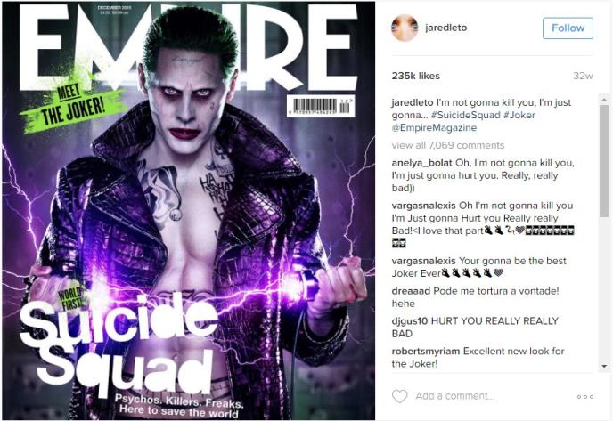 Holivudska zvezda Jared Leto ponoviće ulogu ozloglašenog lika Džokera u novom muzičkom spotu za numeru Skrillexa i američkog repera Ricka Rossa, urađenu za dugo iščekivani akcioni filmski hit "Suicide Squad".