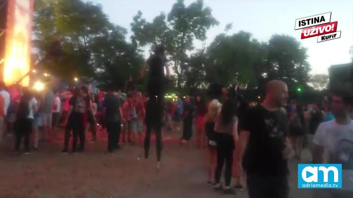 Dok je trajao nastup RoadKillSoda benda na mejn stejdžu, maskirani ljudi na štulama koračali su naokolo.
