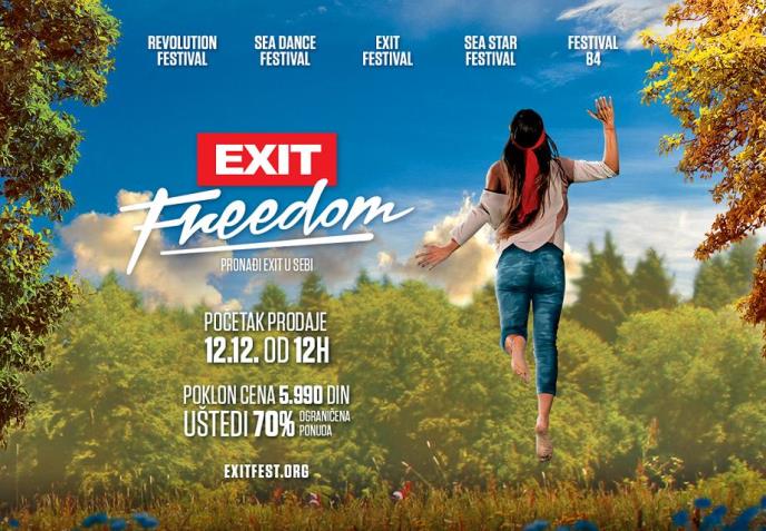 EXIT je jedan od retkih muzičkih festivala koji je izrastao iz pokreta za slobodu i koji od svog osnivanja ima snažnu društvenu misiju, a EXIT Freedom je globalni poziv na slobodu od robovanja materijalizmu, stereotipima i kolektivnim zabludama u kojima se danas nalazi naša civilizacija. Nakon što je EXIT Summer of Love u 2017. postavio rekord sa četiri festivala, EXIT Freedom biće dosad najveći festivalski poduhvat, ne samo u regionu, već i šire, jer će u 2018. okupiti čak pet festivala u Bosni i Hercegovini, Crnoj Gori, Rumuniji, Hrvatskoj i Srbiji.
