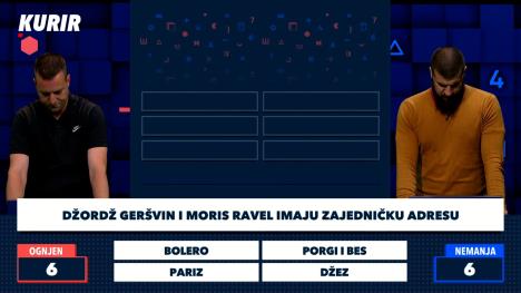 U igri "Kurir" Ognjen nije uspeo da otkrije da se iza njegovih pojmova krije reč "glava" dok je Nemanja u zdanjem trenutku pogodio da se iza njegovih asocijacija krije pojam "orkestar".