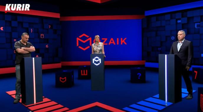 U novom porodičnom kvizu "Mozaik" na Kurir televiziji takmičari se svako veče bore za vredne nagrade i to novčane od 300.000 i 100.000 dinara za prvo i drugo mesto i vredna putovanja, a u 57. epizodi svoja znanja su ukrstili Nikola Janković, na poziciji crvenog takmičara i Veljko Mihajlović na poziciji plavog takmičara.
