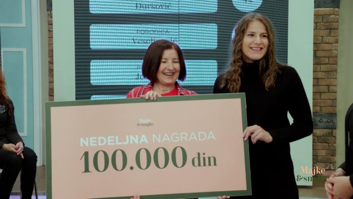 Nedeljna nagrada od 100.000 dinara otišla je u ruke porodice Đurković. Da podsetimo, gospođe Đurković spremale su teleću kapamu, i dobile najviše ocene i od voditelja i od žirija.
