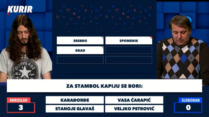 U 50. emisiji popularnog kviza "Mozaik" na Kurir televiziji svoja znanja ukrstili su Miroslav Žeravica na crvenoj poziciji iz Kikinde i Slobodan Brkić na poziciji plavog takmičara.