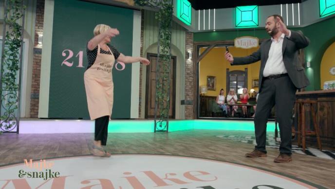 Majka Radica se malo odvojila od kuvanja, pa je zaigrala na podijumu uz veselu muziku koju je sama započela: