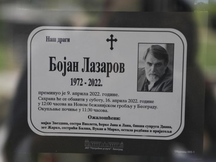 Porodica Bojana Lazarova neutešna. Glumac je na večni počinak ispraćen uz pesmu "Zajdi, zajdi". Sahrana glumca Bojana Lazarova počela je u 12 časova na Novom Bežanijskom groblju u Beogradu.
