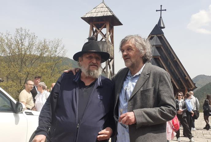Usred Drvengrada ispred crkve posvećene Svetom Savi velikog glumca Petra Božovića dočekao je Emir Kusturica, hlebom i solju, uz zagrljaj velikana.
