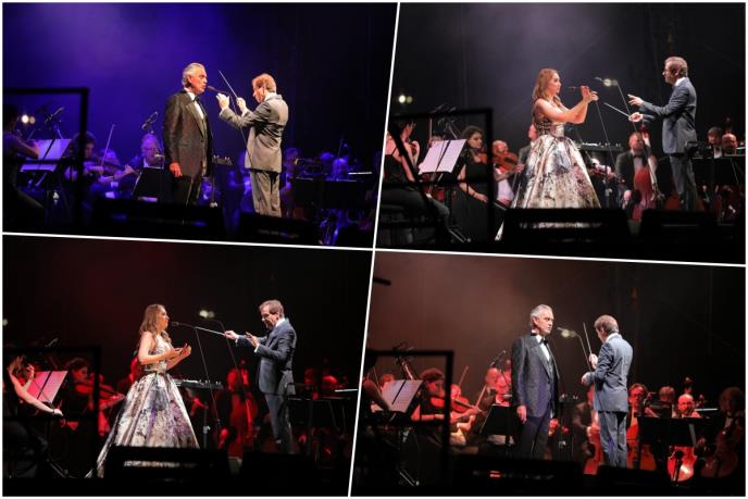 .Čast da mu se pridruži na bini dobila je Jelena Tomašević, koja će sa Bočelijem pesamu "Vivo per lei", ali svoj hit "Gde si bilo jare moje".