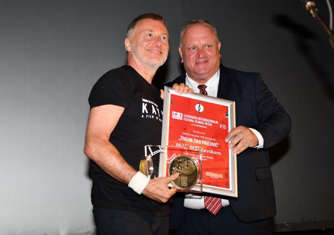 Gradonačelnik Leskovca uručio je nagradu "Živojin Žika Pavlović" ovogodišnjem laureatu, reditelju Milču Mančevskom.