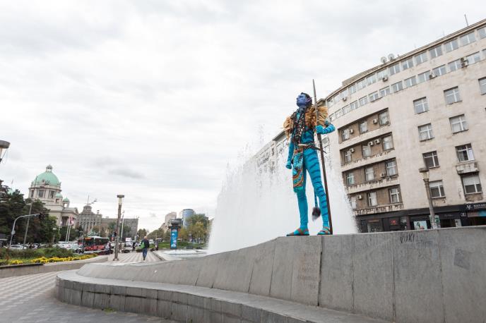BEOGRADOM PROŠETAO GLAVNI LIK AVATARA! Prolaznici začuđeno gledali u plavog čoveka, a oduševiće vas razlog zbog koga je tu! (FOTO)