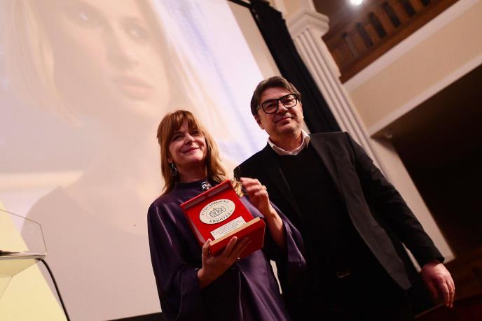 Dva puta je čak najavljivana njena konferencija za medije, ali se nije pojavila. Nemačkoj glumici u subotu veče uručio je Zlatni pečat direktor Kinoteke Jugoslav Pantelić, a ona je iskoristila nekoliko trenutaka da pročita natpis i primeti da je nagrada "divna".