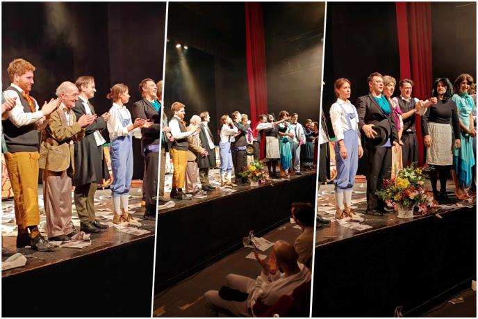- Hvala vam što ste ovde na desetogodišnjicu igranja ove predstave. Hvala Tanji, kompozitoru, kostimografkinji. Za ovih deset godina preživeli smo dva predsednika, nekoliko premijera i tri upravnika. Kad smo počeli sa igranjem, s nama su bili Manda, Vlasta, Neša Nenadović, Mihajlo Todorović Kepa, Branko Cvejić... Tada, kad smo hteli da postavimo predstavu, pitali smo se da li je pametno, da li je "Ministarka" i dalje aktuelna. Danas je i rođendan Branislava Nušića, ali i moje mame - rekao je popularni Godža.