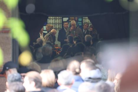 Brojne kolege su došle da se oproste od legendarnog glumca. Prisutni u kapeli grcaju u suzama dok se čuju pesme, među kojima je i "Zlatni dan".